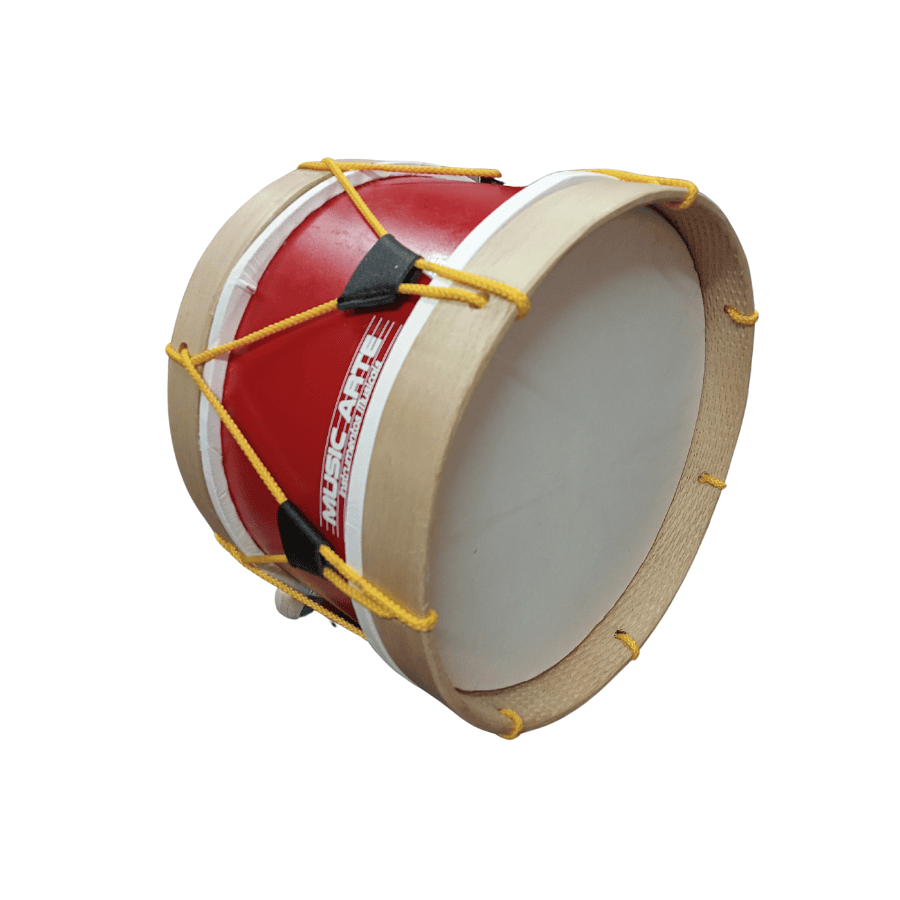 Bombo tradicional em madeira, pintado em branco e cor, corda de nylon, pele natural de cabra, inclui 1 maceta. Fabrico nacional. Outras cores por encomenda.